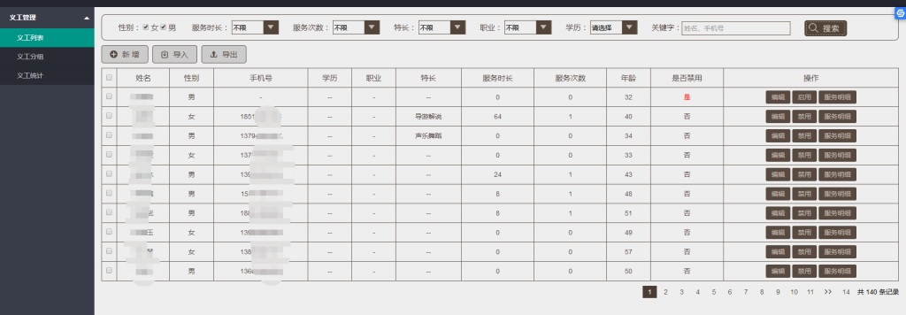 寺院管理軟件的義工管理功能包含義工列表,義工分組,義工統(tǒng)計(jì),每個(gè)功能可以幫助寺院管理人員快速登記、查找和分析相關(guān)義工人員,工作安排可以通過微信信息直接促達(dá),省時(shí)省力管理義工人員。