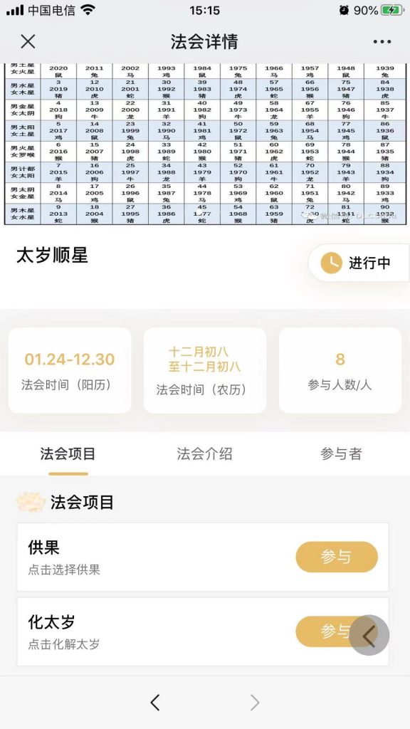 4、法會(huì)板塊隨喜功能文案頂部配置,可自定義隨喜法會(huì)項(xiàng)目選項(xiàng)(放生修福、供燈祈福,牌位供奉或化太歲等隨喜法會(huì)項(xiàng)目按鍵),信眾指尖促達(dá)隨喜供奉。