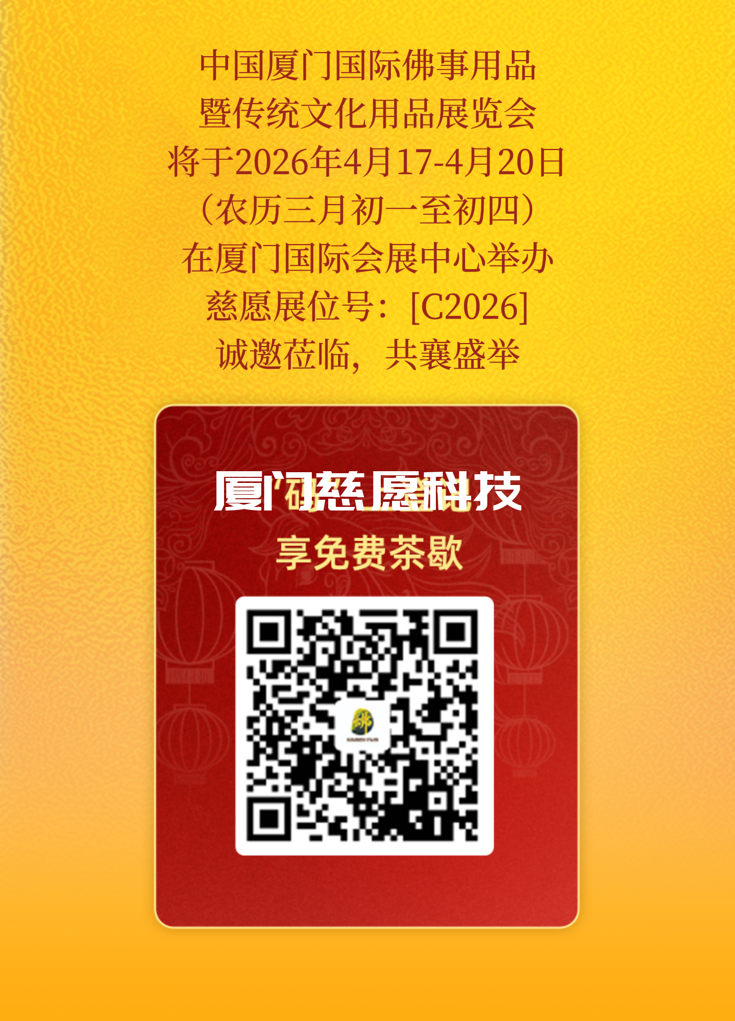 春風送暖,秋韻綿長,鷺島花開,靜待君至。2026中國廈門國際佛事用品展,誠邀全球有緣人齊聚廈門,共賞佛韻匠心,共商行業(yè)發(fā)展,共傳文化薪火,共赴這場跨越山海的禪意之約!